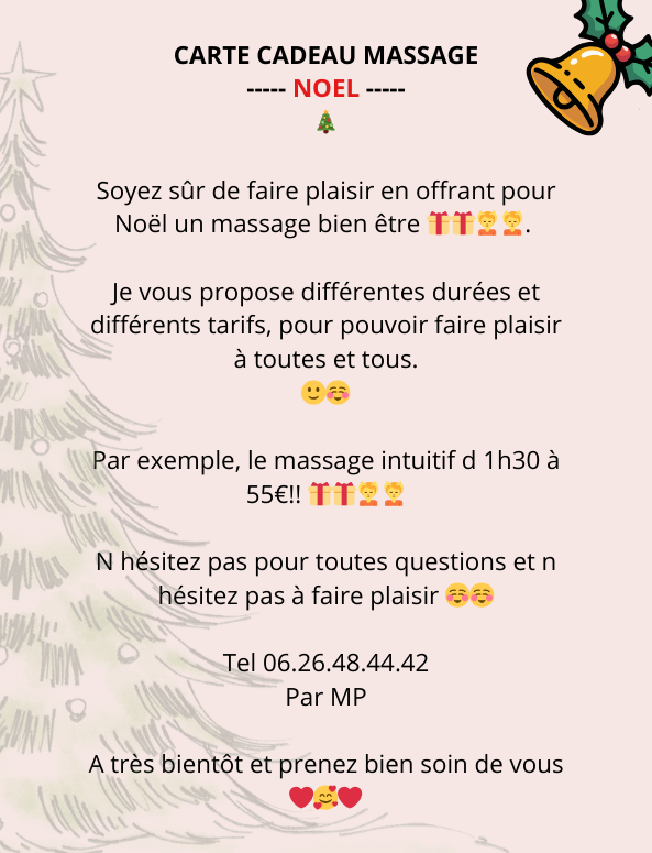 Un immense merci pour ce massage de 2Hqui m'a complètement détendu. Une vraie parenthèse de bien-être au milieu de la tempête. Professionnalisme, écoute et conseils et surtout un vrai talent entre les mains!! j'en suis ressortie ressourcée et apaisée. Si vous cherchez un moment de relaxation absolue, foncez les yeux fermés.