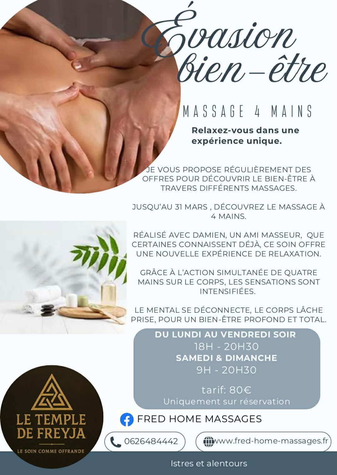 Grace à un bon cadeau que mes amies m'ont offert, j'ai pu m'évader au paradis du bien. mr Fred, vous avez des mans en or, vous m'avez apaisée et dénouer toutes mes tensions. Un professionnalisme et une discrétion au top. Vous devenez mon masseur attitré et je recommande à 200%.