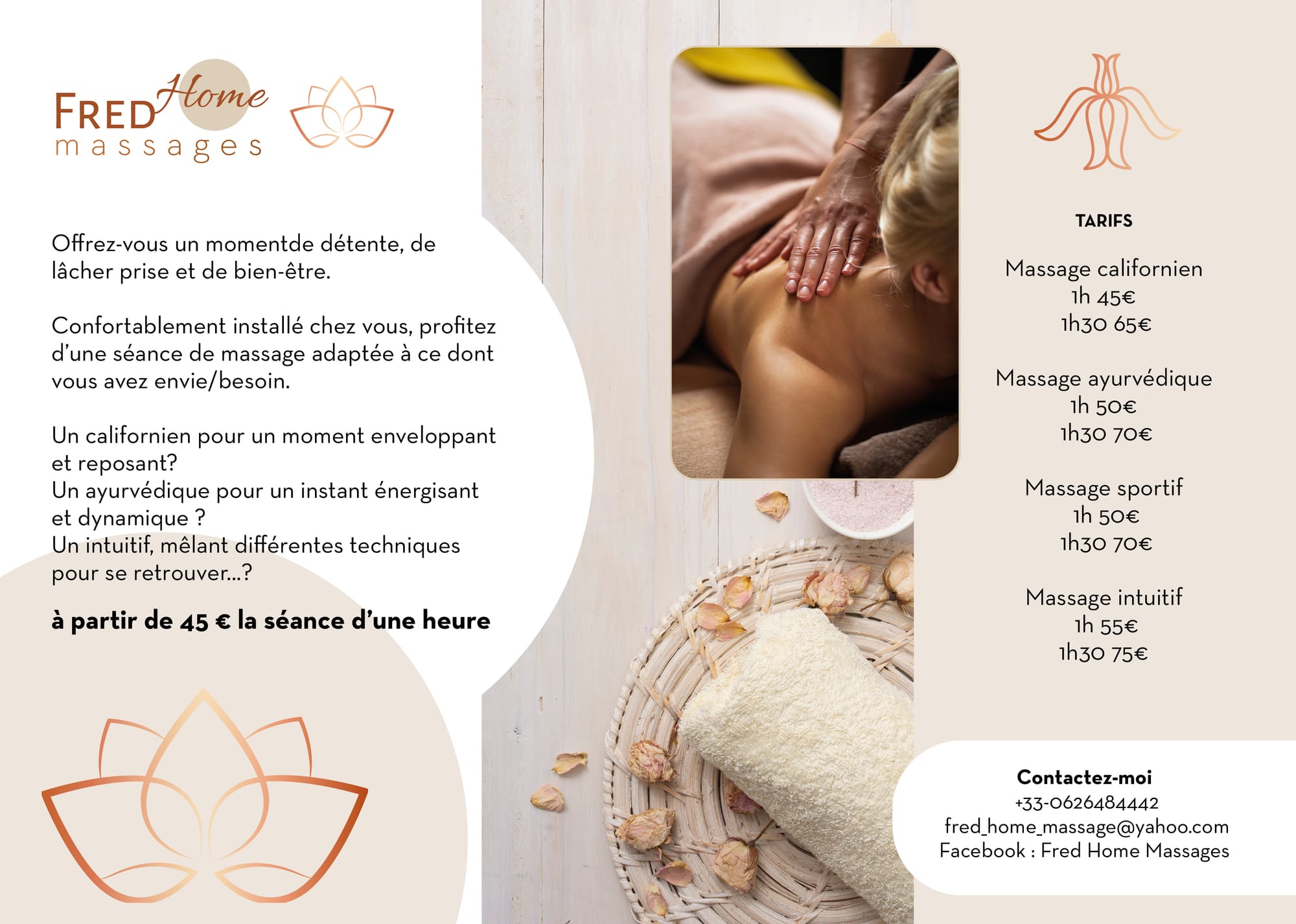 Le tarif est en fonction du type de massage, de la durée qui peut varier (possibilité de séance d'1h30), et du déplacement.